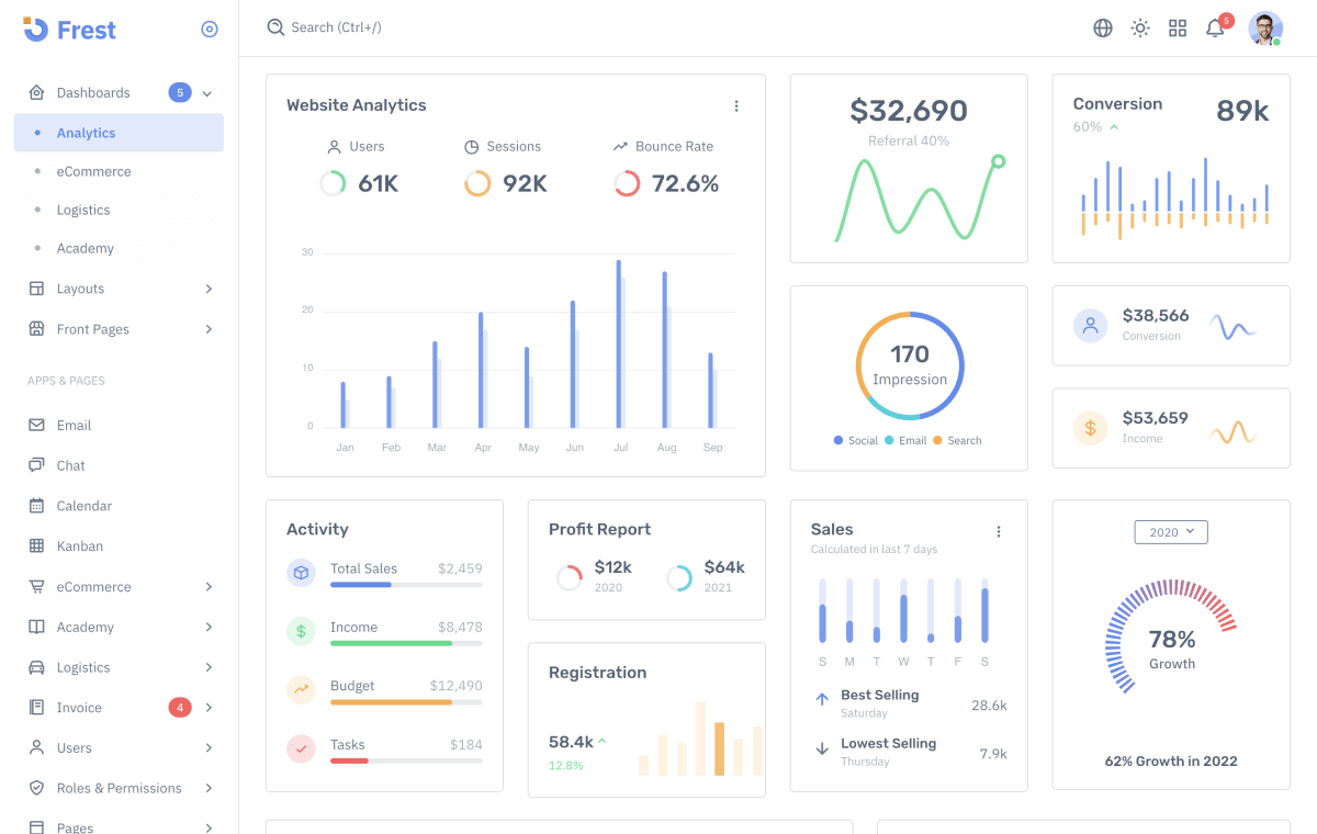 The most comprehensive Bootstrap 5 HTML, HTML Laravel ASP.NET Core admin dashboard template