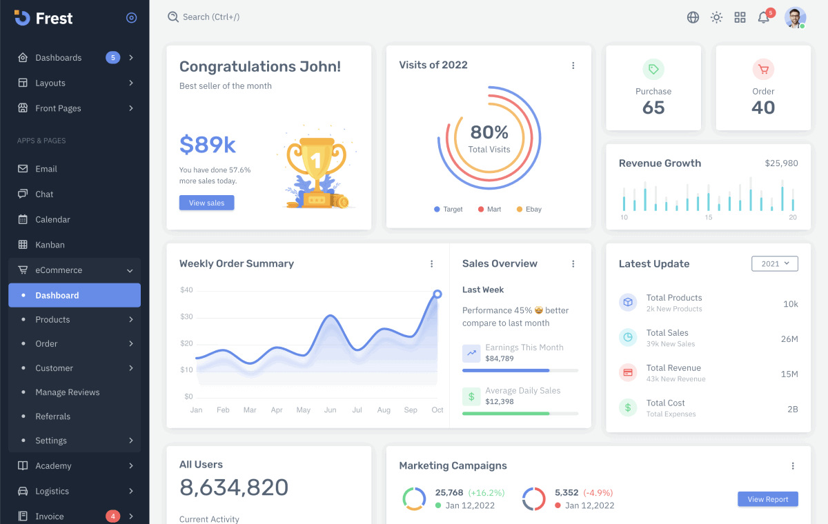 Documentation provides a basic understanding of how our Frest Admin Template works and how you can tweak it, so we highly recommend you first read our guide and then start working on your project using our template.