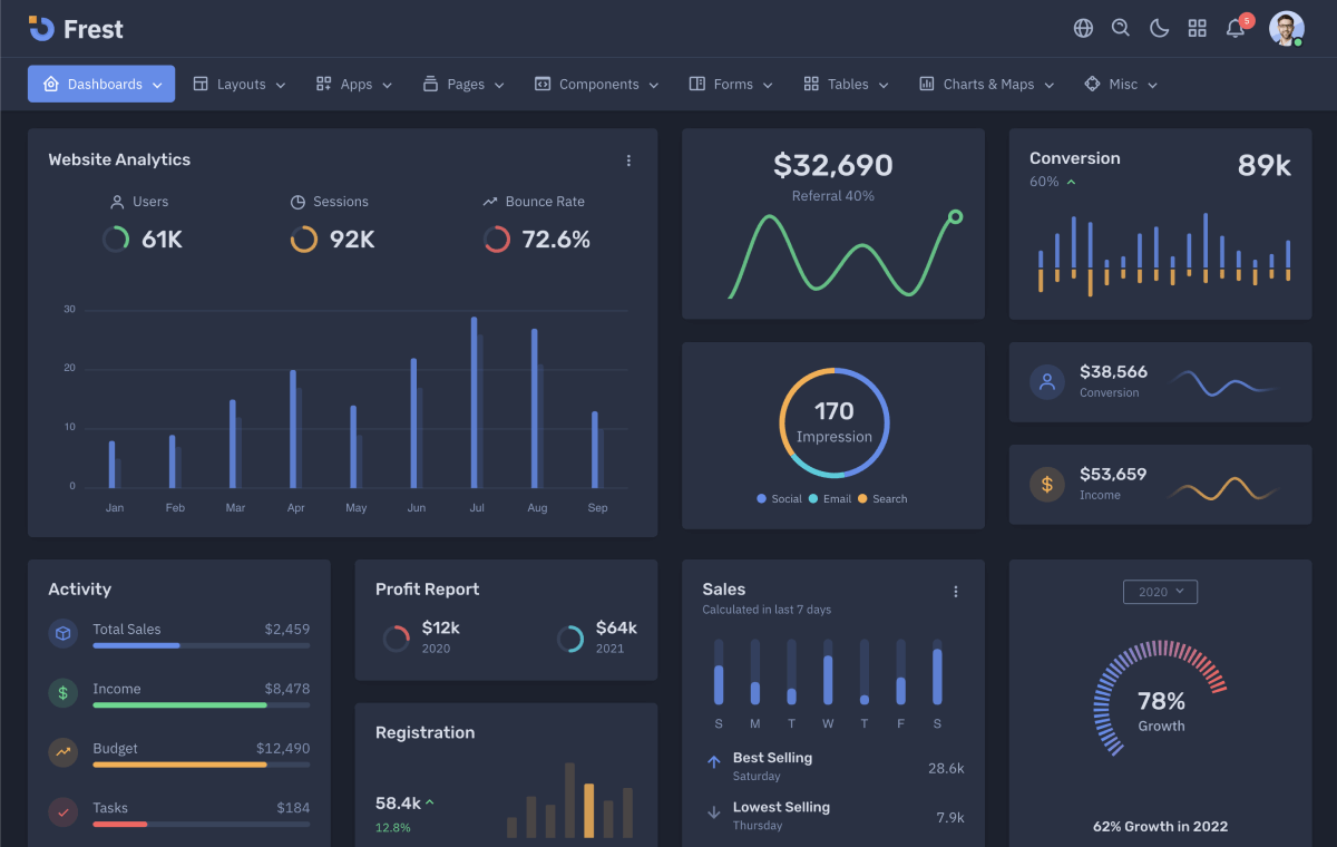 Frest Bootstrap Admin Template offers Layout options for building next-generation web applications